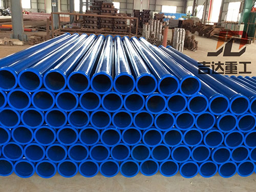 吉達(dá)重工第六代泵車雙層泵管、雙層彎頭引進(jìn)超音頻淬火設(shè)備,高頻內(nèi)壁熱處理工藝,使內(nèi)壁表面形成58-68HRC、層3.2-3.7mm,使管道壽命達(dá)到60000-80000立方,比原來的普通泵車管道提高了3-5倍,延長了產(chǎn)品的使用壽命。